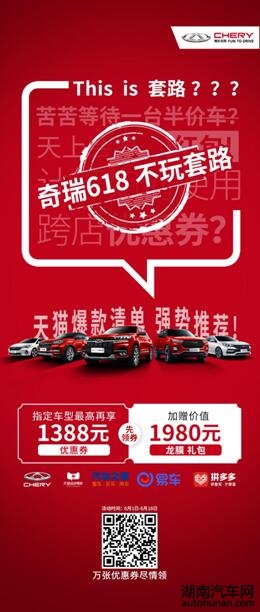 618购物狂欢节,奇瑞汽车多重豪礼限时享!