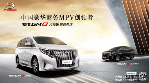 作为广汽传祺的高端定制车型,传祺GM8大师版传承经典,创新突破,全新“震天翼”个性威严外观、390T+8AT稳劲动力、头等舱宽奢座舱等核心价值,展现更为稳重、豪华的商务车形象,致力于为追求优越生活,自信在握的高端精英阶层提供更加尊崇豪华的驾乘体验。大师版将与传祺GM8 2020领航款共同构成GM8产品系列,以双前脸造型组合出击高端MPV市场,满足消费者多样化的购车需求。