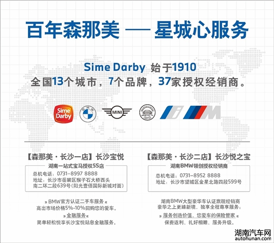 未来就是不断的创新,创新就是不断的前行。长沙宝悦是湖南最全一站式宝马授权5S店。隶属于百年森那美集团在国内的第10家经销商,湖南BMW大型豪华车认证旗舰经销商,湖南BMW M车型认证旗舰经销商,湖南BMW官方I &PHEV认证维修资质,宝悦机动车登记服务站一站式服务…