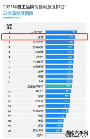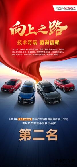 奇瑞获J.D. Power自主品牌销售满意度亚军