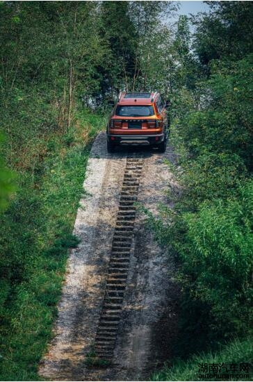 在上坡过程中,博格华纳第五代Haldex四驱系统起到了重要作用,毫秒内的瞬态交互响应,让哈弗大狗将动力合理分配至四个车轮上,保证了100%的扭矩输出,过程中没有丝毫失误,稳稳前行直至坡顶。另外,24°的接近角、22°的通过角以及30°离去角的车身优势,让哈弗大狗在行进过程中完全不用担心底盘和地面会发生磕碰摩擦。而此时丰田RAV4荣放、本田CR-V和日产奇骏的首关挑战则并不顺利,一方面是四驱系统分配动力不均衡导致单个车轮有出现打滑现象,另一方面是车身角度问题,稍有不注意就会刮蹭到底盘。