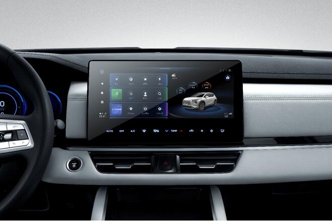 阿图柯作为A+级合资纯电SUV展现了三菱风格的硬派形象。首先在外观上,承袭三菱“Dynamic Shield”设计语言,硬朗、大气的家族式前格栅,搭配刚劲有力的侧面腰线和悬浮式车顶延伸至车尾,整体外观看起来硬朗且不失时尚。阿图柯车型也采用了当下流行的感应式隐藏门把手和大尺寸阳光全景天窗,增加了外观的未来科技感。