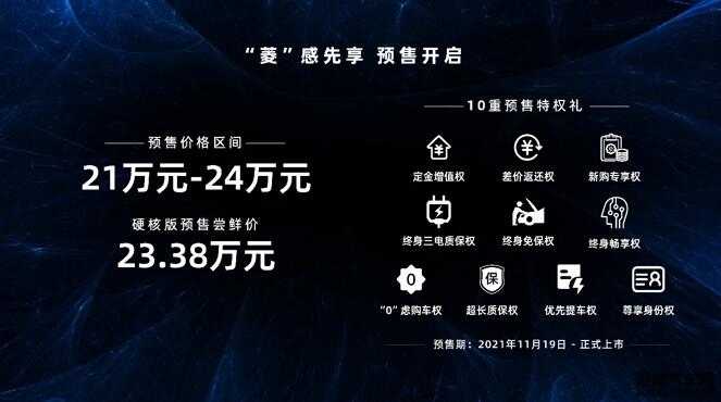 阿图柯在广州车展期间开启预售。作为一款合资硬派纯电SUV,阿图柯的预售价格区间为21万元-24万元,硬核版预售尝鲜价为23.38万元。阿图柯作为广汽三菱的重磅新能源车型,在产品硬核的同时,也向消费者展示十足诚意。在预售期间,订购车的用户将享受阿图柯推出的“菱”感先享10重预售特权礼:三大终身保障:三电质保权、终身免保权、终身畅享权;超值预售权益:定金增值权,差价返还权、新购专享权、“0”虑购车权;车主专享尊贵服务:超长质保权、优先提车权、尊享身份权。多项优惠,价值满满,让每一位用户畅享合资硬派纯电SUV带来的电趣体验。目前广汽三菱的M-SPACE也为阿图柯开启了预售通道,九大圈层的精彩丰富内容也欢迎阿图柯准车主的抢先体验。