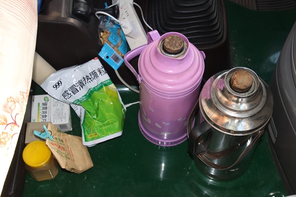 “东风天龙KX的前挡风玻璃视线很开阔,再加上左右和照地镜,基本上能够照顾到前后环境,盲区小。我开车的时候基本不听广播不听音乐,车往前跑,眼睛要照顾前后左右,让车的周围清清楚楚。”在挡把旁边,放着一小包花生米,觉得无聊了,老田就吃上几颗,解闷还提神。