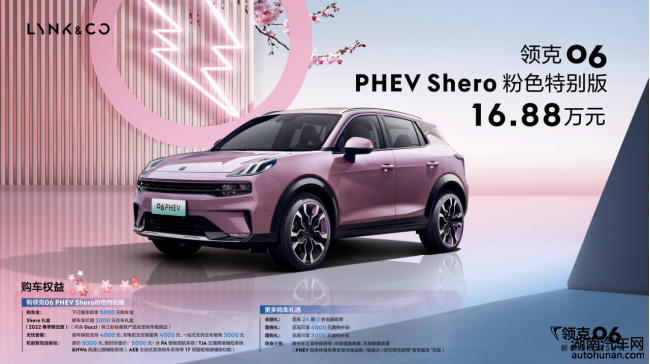 领克06 PHEV Shero粉色特别版上市,售价为16.88万元