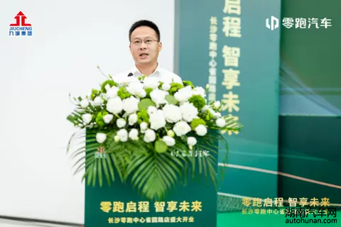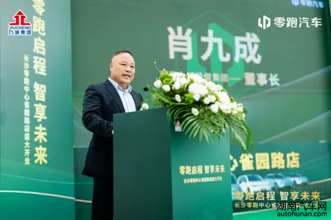 湖南九城投资集团董事长肖九成先生 在致辞中表达了对各方支持的感谢,并指出此次合作是九城集团深化汽车产业布局、拥抱新能源浪潮的重要实践。他承诺:"集团将依托本地资源全力赋能门店运营,推动零跑品牌与区域经济协同发展。"