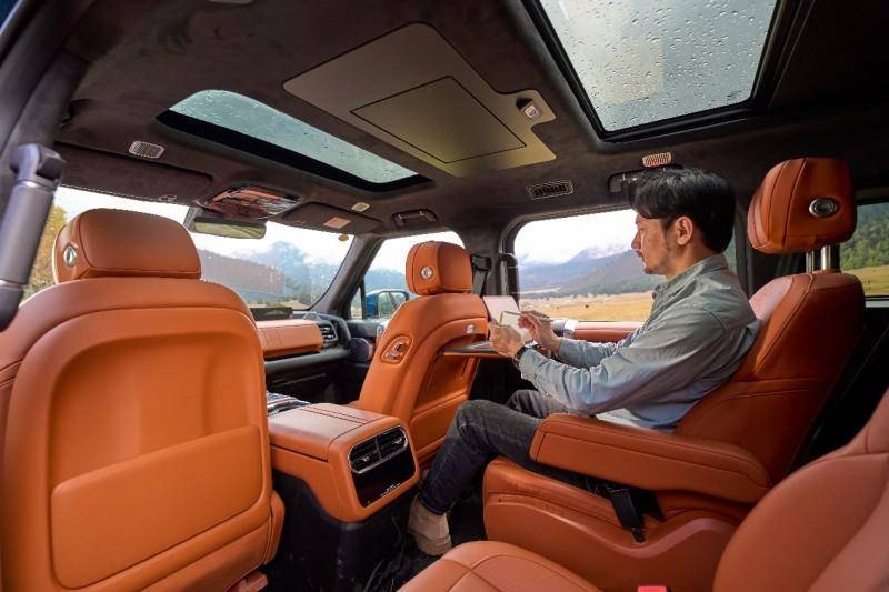 “在越野途中享受到行政级豪华”,是G700所有带来的独享体验。云台底盘的空气悬架+CDC系统,每秒1000次采集路面信息,阻尼调节范围超常规减振器5倍,将杂拉沟碎石路的颠簸过滤得近乎无感;云憩智能座椅采用Nappa头层真皮,14层发泡结构配合八点按摩功能,大幅减少长时间越野、穿越后的疲惫感。