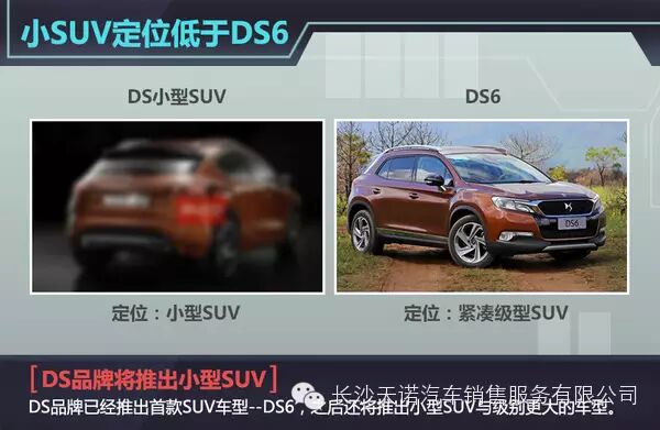 DS的产品线中,在推出DS3、DS4与DS5三款轿车后,于去年推出了首款SUV车型DS6。对于持续升温的SUV细分市场,DS品牌全球设计总监梅特鲁此前向网通社透露:“未来SUV将是发展的趋势,相比DS 6而言,DS正在设计更大与更小级别的SUV。”此次即将亮相的DS4 crossback车型尽管只是将车辆的离地间隙进一步提升,但是从外观上看,该车更像是DS6品牌的缩小版,而小型SUV细分市场中,DS品牌还尚属空白,因此DS4产品系列中有望推出一款小型SUV。