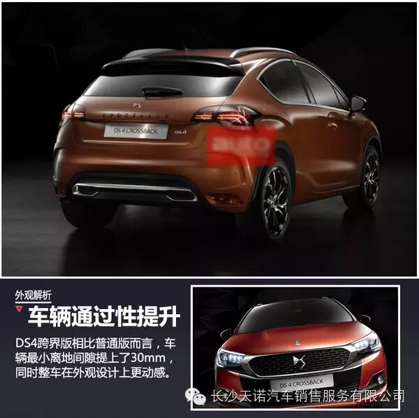 在DS品牌的产品定位中,DS4车型定位于紧凑级两厢车,该车目前以进口的方式引入国内市场。此次法兰克福车展将亮相的新款DS4,将是该车的改款车型。在此基础上,DS还推出了DS4 跨界版车型,该车名称为“DS 4 CROSSBACK”,相比普通版车型而言,该车离地间隙提升了30mm,拥有更好的通过性。动力方面,现款DS4搭载了一台1.6THP发动机,但随着1.2T三缸增压发动机的使用,该车也有望搭载该发动机。