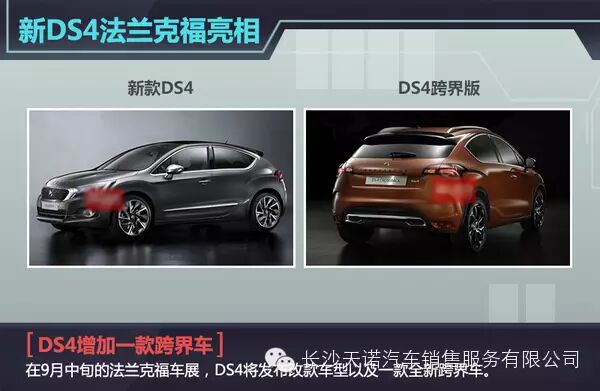 PSA集团旗下的DS品牌在正式独立后,车辆已陆续使用全新的DS专属logo,而不再悬挂雪铁龙的双立人标识。近日,网通社从捷克媒体autoforum获悉:在9月中旬开幕的法兰克福车展上,DS品牌将发布新款DS4,该车将推出常规版与跨界版两种车型,车辆均使用了DS品牌的独立logo。这其中跨界版车型的推出,预示着未来DS有望推出定位低于DS6的小型SUV。