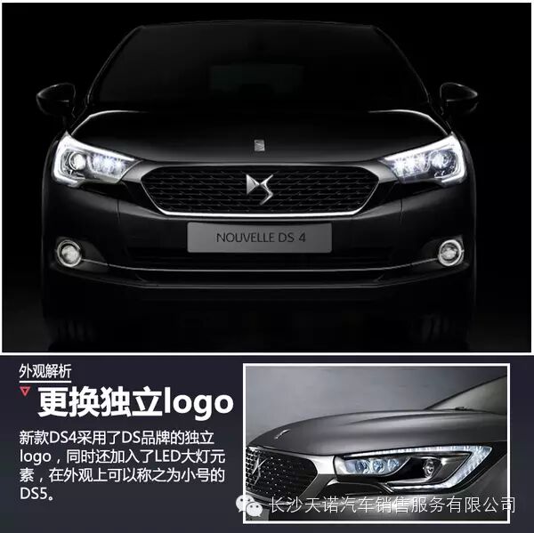 在原先标致雪铁龙集团中,DS品牌属于雪铁龙,车辆定位高于雪铁龙品牌车型。去年,标致雪铁龙集团将DS品牌成为旗下继标致、雪铁龙之外的第三个品牌,因此为了从外观上与雪铁龙品牌产生区别,从DS5开始采用了独立logo。此外在外观方面,DS4还采用了与DS6几乎相同的前脸设计,纺锤式格栅、一体式大灯无疑不是DS最新的产品基因,同时车辆还采用了LED大灯。